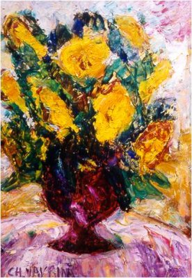 Ch. Vavrina Click on image to see enlargement. #987 Blue Mood 10x8 $600. #462 Carib Holiday 28x22 $2900 #993 Break-Through 22x24 $2500. #1026 Twilight Harbor 26x25 $3100 #1063 Yellow Flowers, Purple Vase 18x24 $2100 #539 Landings Bridge 20x24 $2400.