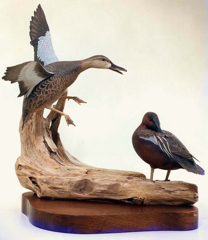 The first birds that Jim carved were cork Black Ducks that he used for hunting.